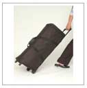 Der digital bedruckte Stoff ist direkt am Gestell befestigt, auch wenn das Display zusammengefaltet und im Transportkoffer verstaut ist.